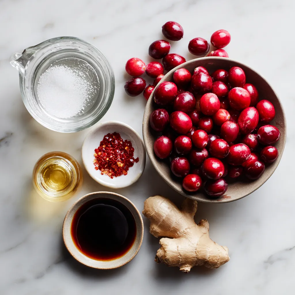 A spicy and sweet dipping sauce made with cranberries and chili, perfect for appetizers.