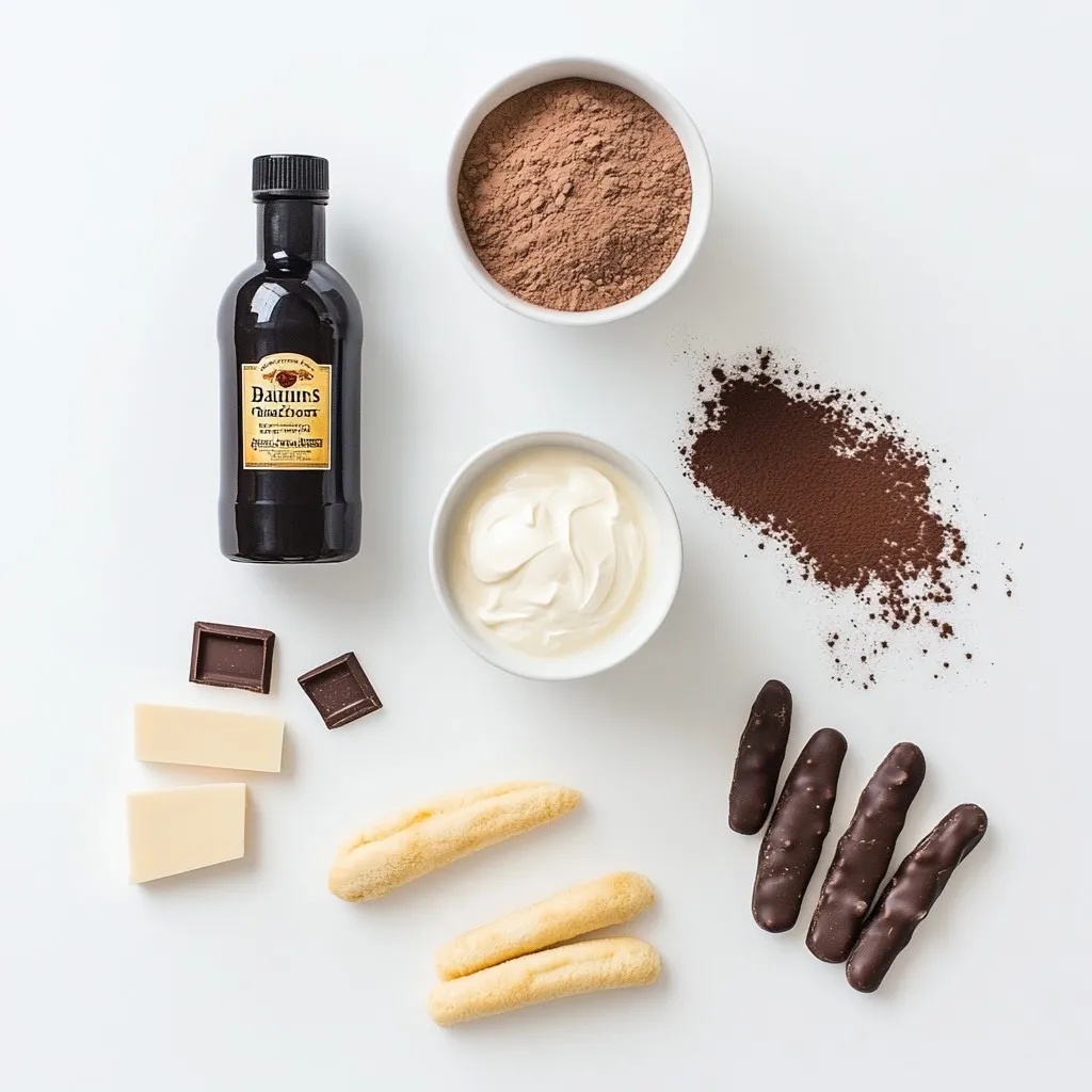 Gather these ingredients before you start. The espresso gives a rich coffee flavor. Baileys adds a creamy, sweet touch. Mascarpone cheese brings that classic tiramisu taste. Heavy cream makes the mixture light and fluffy. Sugar sweetens it all up, while vanilla adds depth. Cocoa powder on top makes it look fancy. Ladyfingers and chocolate shavings are the final touches.