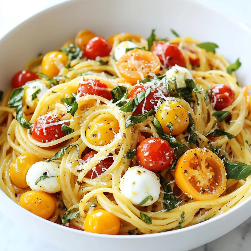 Spaghetti or linguine works best for this meal. Both types soak up the sauce well. Choose ripe tomatoes for a sweet flavor. Cherry tomatoes add a nice pop of color and taste. Garlic brings depth to the dish, while fresh basil adds a bright touch.