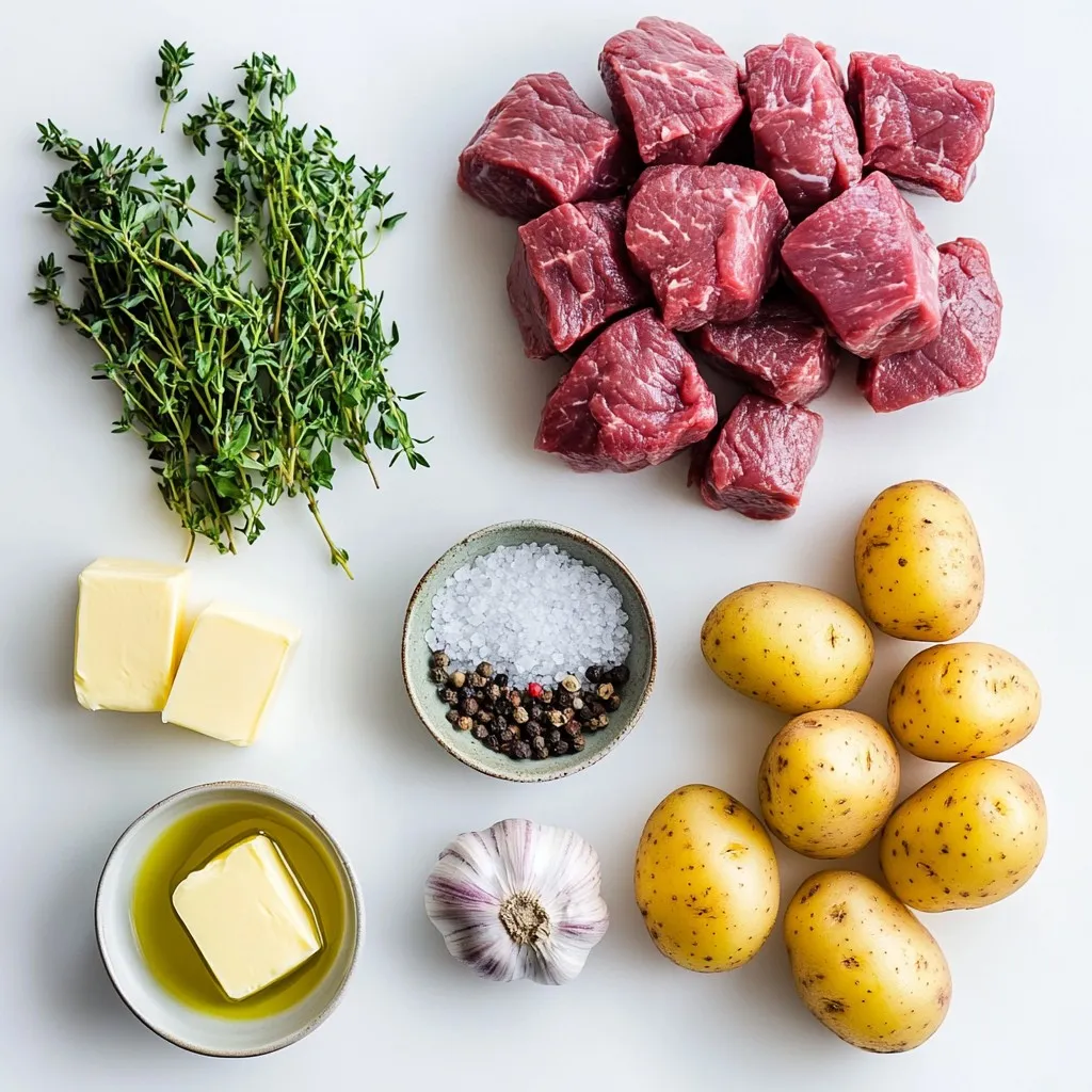 This list packs a punch of flavor! The beef sirloin gives a tender bite, while baby potatoes add a comforting base. Unsalted butter and garlic bring richness and aroma. Fresh herbs like rosemary and thyme enhance the dish’s taste. Olive oil helps the potatoes roast perfectly. Finally, salt and pepper are key for seasoning, and fresh parsley adds the finishing touch.