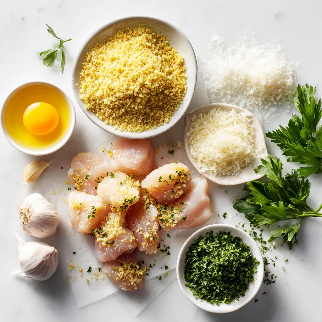 To make Garlic Parmesan Chicken Bites, gather these items: - 1 lb boneless, skinless chicken breast, cut into bite-sized cubes - 1/2 cup Panko breadcrumbs for a delightful crunch - 1/2 cup freshly grated Parmesan cheese - 3 cloves garlic, finely minced - 1 large egg, whisked until well combined - 2 tablespoons fresh parsley, finely chopped - 1 teaspoon Italian seasoning blend - Salt and black pepper, to taste - Olive oil cooking spray If you need to swap ingredients, here are some easy ideas: - Use regular breadcrumbs instead of Panko for a softer texture. - Grated Pecorino Romano cheese works well in place of Parmesan. - If you’re out of fresh garlic, use 1 teaspoon of garlic powder. - You can replace the parsley with dried herbs, like oregano or basil. Want to take your chicken bites up a notch? Try these extras: - Add a pinch of red pepper flakes for heat. - Mix in lemon zest for a fresh, zesty kick. - Use fresh herbs like thyme or rosemary for added aroma. - Serve with marinara sauce or ranch dressing for dipping. These tweaks can make your Garlic Parmesan Chicken Bites even more fun and tasty! {{ingredient_image_2}} To make the Garlic Parmesan Chicken Bites, start by preheating your oven to 400°F (200°C). While the oven heats, line a baking sheet with parchment paper. This keeps the chicken from sticking. In a bowl, mix together Panko breadcrumbs, grated Parmesan cheese, minced garlic, Italian seasoning, chopped parsley, salt, and black pepper. Stir well to blend the flavors. Next, take each chicken piece and dip it in the whisked egg. Let any extra egg drip off. Then, coat the chicken in the breadcrumb mix. Press down lightly to help it stick. Arrange the coated chicken on the baking sheet, giving each piece space to cook evenly. Lightly spray the tops with olive oil cooking spray. This helps achieve a nice, crispy crust. Bake in the oven for 15-20 minutes. Flip the chicken bites halfway through to ensure they cook on both sides. They should be golden brown and cooked through when done. For a great texture, use Panko breadcrumbs. They add a nice crunch that regular breadcrumbs can’t match. Spraying the chicken with olive oil helps it brown nicely. Always make sure your oven is fully preheated before baking. This keeps the chicken from steaming and helps it crisp up. Also, do not overcrowd the baking sheet. If the bites are too close, they will not cook evenly. Give them space to breathe! To ensure all chicken bites cook evenly, cut them into uniform sizes. This way, they cook at the same rate. Flipping them halfway through baking is key too. It helps achieve that perfect golden color on both sides. If you have a meat thermometer, check that the internal temperature reaches 165°F (75°C). This way, you know they are fully cooked. Let them cool for a few minutes after baking. This keeps them juicy and tasty. To get your chicken bites crispy, start with Panko breadcrumbs. They are lighter and crunchier than regular breadcrumbs. Make sure to coat each piece well. Press the breadcrumb mix onto the chicken. This helps it stick better. Use olive oil spray on top before baking. This adds flavor and helps create a golden crust. One common mistake is not preheating the oven. If your oven is not hot enough, the chicken won’t crisp up. Another mistake is overcrowding the baking sheet. Leave space between the pieces for even cooking. Also, don’t skip flipping the chicken halfway through. This ensures both sides get brown and crispy. You can add more flavor in many ways. Try using fresh herbs like basil or thyme. You can also add a bit of lemon zest for brightness. For a spicy twist, mix in some red pepper flakes. Serve your chicken bites with marinara or ranch for dipping. This adds another layer of flavor and makes each bite even more enjoyable. Pro Tips Use Fresh Ingredients: Always opt for fresh garlic and parsley to enhance the flavor of your chicken bites. Fresh ingredients make a noticeable difference in taste. Adjust the Crunch: For extra crunch, consider adding some finely chopped nuts to the breadcrumb mixture. Almonds or walnuts can add a delightful texture. Don’t Skip the Flip: Flipping the chicken bites halfway through baking ensures even cooking and promotes a uniform golden-brown finish on all sides. Experiment with Dips: While marinara and ranch are classic choices, try serving these bites with a spicy aioli or a tangy yogurt dip for a unique twist. {{image_4}} You can mix things up with different seasonings. Try using smoked paprika for a hint of smoke. Or, add some cayenne pepper for heat. You can also use lemon zest for a bright twist. A dash of cumin adds a warm flavor that pairs well with chicken. Want to switch it up? Use chicken thighs instead of breasts for more flavor. You can even use turkey for a leaner option. If you want a vegetarian dish, try using tofu or tempeh. Just make sure to press and cube them well before coating. These bites taste great with many sides. Serve them with marinara sauce or ranch dressing for dipping. A side salad adds freshness and crunch. You can also pair them with garlic bread for a hearty meal. For a fun twist, serve them in tacos with fresh veggies. To keep your Garlic Parmesan Chicken Bites fresh, place them in an airtight container. This helps lock in moisture and flavor. Make sure to let them cool completely before sealing. You can store the bites in the fridge for up to three days. If you want to keep them longer, freezing is a great option. When you’re ready to enjoy leftovers, reheating properly is key. For the best texture, use an oven. Preheat it to 350°F (175°C). Place the chicken bites on a baking sheet and heat for about 10-15 minutes. This keeps them crispy. You can also use an air fryer for about 5-7 minutes at the same temperature. Avoid the microwave, as it can make them soggy. If you have extra bites, freezing is simple. Arrange the cooled chicken bites in a single layer on a baking sheet. Freeze them for 