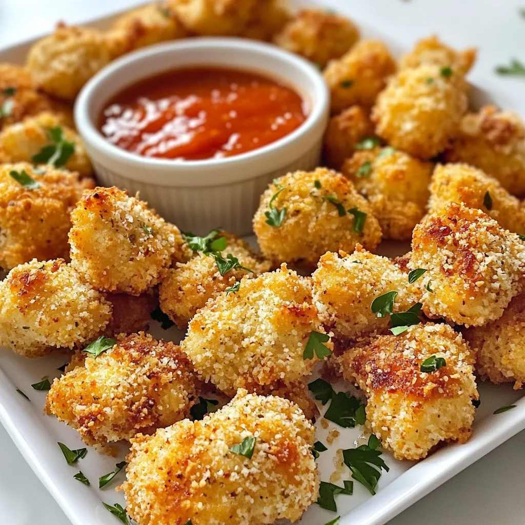 Crispy and flavorful chicken bites coated in garlic and Parmesan.
