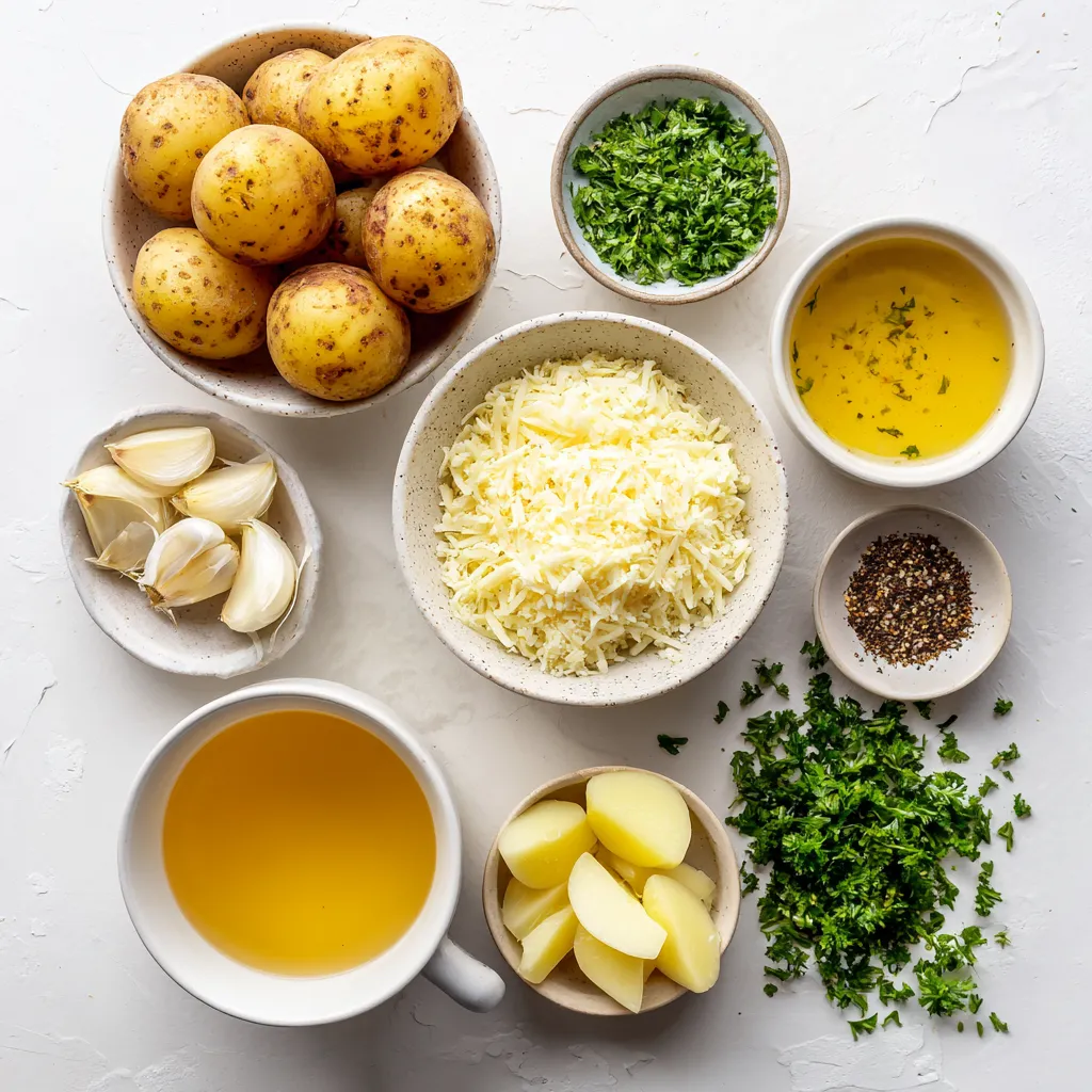 - Chicken and Potatoes - 4 boneless, skinless chicken breasts - 1.5 lbs baby potatoes, halved - Seasonings and Broth - 1 cup chicken broth - 5 cloves garlic, finely minced - 1 cup freshly grated Parmesan cheese - 1 teaspoon Italian seasoning blend - 1/2 teaspoon freshly ground black pepper - 1/2 teaspoon salt (adjust to taste) - 1 tablespoon extra virgin olive oil - Garnishing Ingredients - Fresh parsley, chopped (for garnish) I love using simple, fresh ingredients for this dish. The chicken and baby potatoes create a hearty base. The chicken is tender and juicy, while the potatoes soak up the savory broth and flavors. The garlic adds a lovely kick, and Parmesan brings a rich, cheesy taste. I always use fresh garlic and real Parmesan cheese for the best flavor. The Italian seasoning blend adds warmth and depth to the dish. Don't forget about the olive oil! It keeps everything moist as it cooks. Finally, fresh parsley brightens the plate and adds a pop of color. These ingredients work together to make a delicious, comforting meal. {{ingredient_image_2}} Making the Garlic-Parmesan Mixture Start by taking a large bowl. Add five cloves of minced garlic. Then, mix in one cup of grated Parmesan cheese. Next, add one teaspoon of Italian seasoning, half a teaspoon of black pepper, and half a teaspoon of salt. Stir all the ingredients well until they form a smooth paste. This mixture brings great flavor to your chicken. Preparing the Crockpot Take your crockpot and drizzle one tablespoon of olive oil on the bottom. Use a paper towel or your hands to spread it around. This step helps to keep the chicken and potatoes from sticking to the pot. Layering the Ingredients Now, take 1.5 pounds of halved baby potatoes. Arrange them evenly across the bottom of the crockpot. This layer will soak up all the yummy juices. Then, take each chicken breast and rub the garlic-Parmesan mixture all over it. Place the chicken on top of the potatoes. Setting the Crockpot Once everything is layered, pour one cup of chicken broth around the edges of the crockpot. Avoid pouring it on top of the chicken. This keeps the flavor strong. After that, secure the lid tightly. Cooking Time and Temperature You can set your crockpot on low for 6-7 hours or high for 3-4 hours. Cooking on low gives the best flavor and tenderness. Checking for Doneness When the cooking time is up, check if the chicken is fully cooked. It should be white and juices should run clear. The potatoes should be tender when pierced with a fork. If everything is done, taste and add more salt or pepper if needed. Enjoy your meal hot, and don’t forget to garnish with fresh parsley for color and flavor! Ensuring Tender Chicken To keep your chicken juicy, don’t skip the marinade step. Rub the garlic-Parmesan mixture on the chicken well. This helps the meat soak in flavor. Use chicken breasts that are even in size. This way, they cook evenly. Always check the internal temperature. It should reach 165°F for safe eating. Flavor Enhancement Suggestions Add herbs for extra taste. Fresh thyme or rosemary work great. You can also squeeze lemon juice before serving. This adds brightness to the dish. For a kick, sprinkle some red pepper flakes in the garlic-Parmesan mix. This small change can make a big difference. Presentation Ideas Serve the chicken and potatoes on a nice platter. Drizzle some cooking juices over them. This keeps everything moist and adds shine. Finish with a sprinkle of fresh parsley. It adds color and freshness to the dish. Pairing Recommendations This meal pairs well with a simple green salad. A light vinaigrette works best to balance the rich flavors. You can also serve it with crusty bread. It’s perfect for soaking up any extra sauce. For a drink, try a crisp white wine or sparkling water. Pro Tips Use Fresh Ingredients: Always opt for fresh garlic and high-quality Parmesan cheese to enhance the flavor of your dish. Customize Your Seasoning: Adjust the Italian seasoning and salt according to your taste preferences for a personalized flavor profile. Check for Doneness: Use a meat thermometer to ensure that the chicken reaches an internal temperature of 165°F for safe consumption. Let it Rest: Allow the chicken to rest for a few minutes after cooking to retain its juices before serving. {{image_4}} Chicken Alternatives You can use other meats like turkey or pork. These will change the taste but still work well. Bone-in chicken adds flavor but takes longer to cook. If you prefer a leaner option, try chicken thighs. They stay juicy and tender. Potato Substitutes If you want a lower-carb option, use cauliflower. It cooks quickly and absorbs flavors well. Sweet potatoes add a nice sweetness and color. You can also try parsnips for a unique twist. They add a bit of sweetness and are creamy when cooked. Different Seasoning Blends You can mix up the spices for new tastes. Try adding smoked paprika for a smoky flavor. Cajun seasoning gives it a spicy kick. For an Asian twist, use soy sauce and ginger. Each mix brings a different vibe to the dish. Vegetarian Versions To make this dish vegetarian, swap chicken for hearty vegetables like mushrooms or eggplant. Use vegetable broth instead of chicken broth. Add beans for protein and texture. This version will still be rich and satisfying while being meat-free. - Proper Container Use: Use a clean, airtight container for storing leftovers. This helps keep the chicken and potatoes fresh. Make sure to let the meal cool down before sealing it. - Shelf Life: Store your leftovers in the fridge for up to three days. If you want to keep them longer, consider freezing them instead. - How to Freeze: To freeze, place the cooled chicken and potatoes in a freezer-safe bag or container. Remove as much air as you can to prevent freezer burn. Label the bag with the date for easy tracking. - Reheating Tips: When ready to eat, thaw the meal in the fridge overnight. Reheat in the microwave or oven until heated through. Ensure