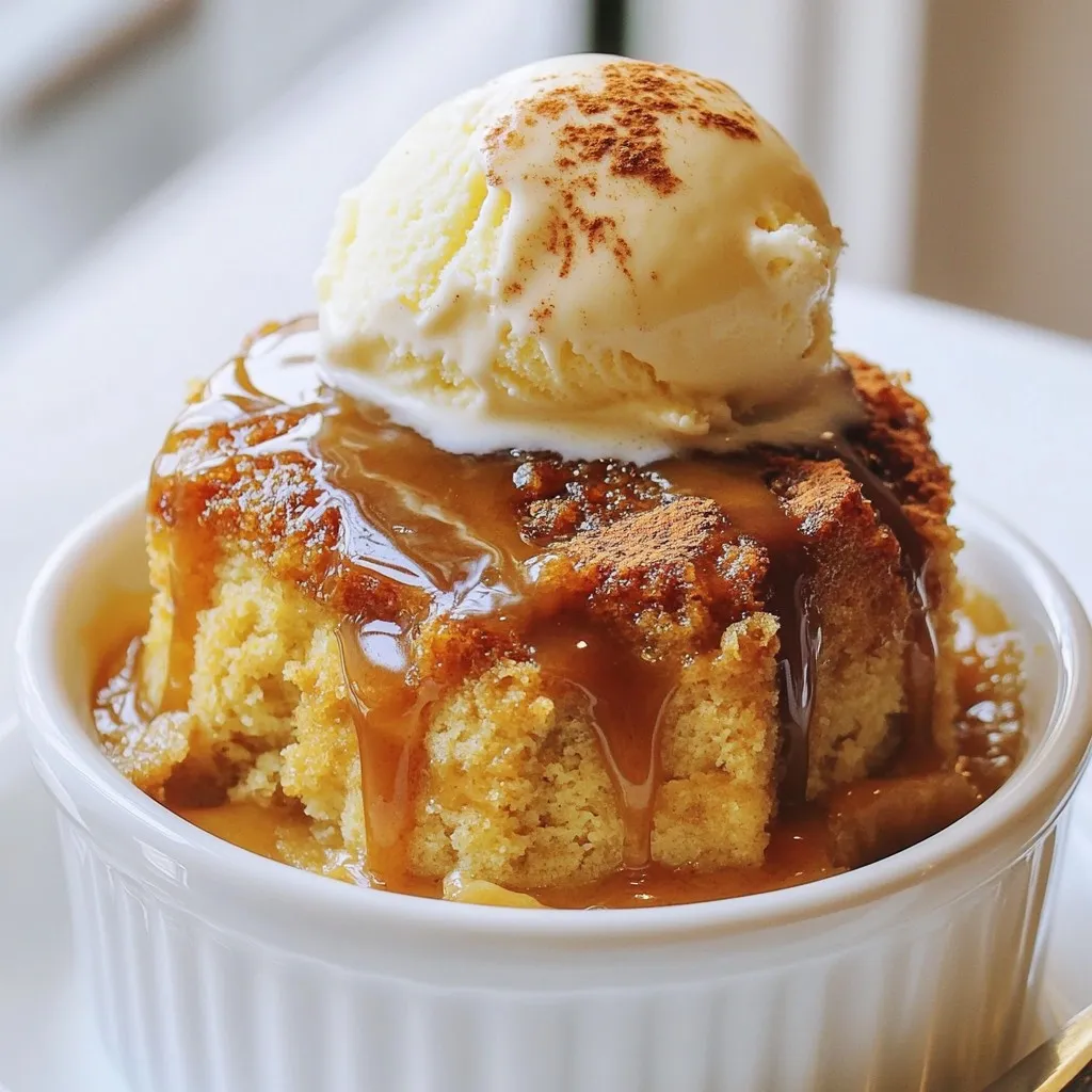 - 1 cup all-purpose flour - 1 teaspoon baking powder - 1 teaspoon baking soda - 1 tablespoon ground ginger - 1 tablespoon ground cinnamon - 1/2 teaspoon ground cloves - 1/2 teaspoon salt The dry ingredients form the foundation of your cake. Use all-purpose flour for the best texture. Baking powder and baking soda help the cake rise. The spices add warmth and flavor. Ginger, cinnamon, and cloves create that classic gingerbread taste. Make sure to mix them well to blend all the flavors. - 1/2 cup unsalted butter, softened to room temperature - 3/4 cup packed brown sugar - 1/4 cup molasses - 2 large eggs, at room temperature - 1/2 cup whole milk - 1 teaspoon pure vanilla extract The wet ingredients bring moisture and richness. Softened butter and brown sugar create a fluffy mix. Molasses adds deep flavor and color. Use room temperature eggs for a smoother batter. Whole milk keeps the cake tender. Finally, vanilla extract enhances the overall taste. - 1/2 cup packed brown sugar - 1/4 cup unsalted butter - 1/2 cup heavy cream - 1 teaspoon pure vanilla extract - A pinch of salt The toffee sauce is the star of the show. Brown sugar and butter create a rich base. Heavy cream makes it creamy and smooth. A touch of vanilla adds aroma. The salt balances the sweetness, giving your sauce a gourmet touch. {{ingredient_image_2}} First, preheat your oven to 350°F (175°C). This step is key to getting the right rise in your cake. While the oven heats, grease an 8-inch square baking dish with butter or cooking spray. Make sure the bottom and sides are well-coated. This prevents sticking and helps the cake slide out easily after baking. In a medium bowl, combine your dry ingredients. You will need: - 1 cup all-purpose flour - 1 teaspoon baking powder - 1 teaspoon baking soda - 1 tablespoon ground ginger - 1 tablespoon ground cinnamon - 1/2 teaspoon ground cloves - 1/2 teaspoon salt Whisk these together until they blend well. Set aside for later. In a large mixing bowl, cream together 1/2 cup of softened unsalted butter and 3/4 cup of packed brown sugar. Use a hand mixer or stand mixer for about 3-5 minutes until light and fluffy. This process adds air and helps your cake rise. Add in 1/4 cup of molasses and 2 large eggs, both at room temperature, to the butter-sugar mix. Blend until smooth. Next, gradually add your dry mix to the wet mixture. Alternate this with 1/2 cup of whole milk. Start and end with the dry mix. Stir until you have a smooth batter. Finally, mix in 1 teaspoon of pure vanilla extract. Pour the batter into your prepared baking dish, using a spatula to spread it evenly. Place the dish in your preheated oven. Bake for 30-35 minutes. To check if it's done, insert a toothpick in the center. If it comes out clean, your cake is ready. Once baked, remove the dish from the oven and let it cool for a few minutes. This cooling time helps the cake set. It will be easier to cut once it’s cooled down a bit. To get the right cake, use room temperature ingredients. Cold butter and eggs can lead to a dense cake. They mix better when they are warm. Mix the butter and sugar until it is fluffy. This takes about 3-5 minutes. The air you beat in helps the cake rise. When adding dry ingredients, do it in batches. Start and end with the dry mix, and alternate with milk. This method keeps the batter smooth. Timing is key for the toffee sauce. Drizzle it while it is warm. This helps it soak into the cake. If you let it cool too much, it will harden. To avoid crystallization, stir the sauce constantly as it simmers. This keeps the sugar from clumping. If it does get too thick, add a splash of cream to loosen it. Pair the cake with a scoop of vanilla ice cream. The cold ice cream contrasts well with the warm cake. For a nice touch, sprinkle ground cinnamon on top. You can also add crushed ginger snap cookies for crunch. This makes the dish look fancy and adds extra flavor. Pro Tips Use Fresh Spices: For the best flavor, use fresh ground spices instead of pre-ground ones. This will enhance the overall taste of your gingerbread pudding cake. Check for Doneness: To ensure your cake is perfectly baked, insert a toothpick into the center. It should come out clean or with a few moist crumbs attached. Make Ahead: You can prepare the toffee sauce in advance and store it in the refrigerator. Just reheat it gently before serving to save time. Serve Warm: This cake is best enjoyed warm. If it cools down, simply reheat individual portions in the microwave for a few seconds before serving. {{image_4}} You can change up the flavor of your gingerbread pudding cake in fun ways. Adding fruit is a great idea! Chopped apples or pears can add sweetness and moisture. You might also try adding a handful of nuts, like walnuts or pecans. They give a nice crunch and extra flavor. Experimenting with spices is another exciting option. Try adding nutmeg for a warm twist. A dash of allspice can also enhance the ginger and cinnamon notes. You can even mix in some cocoa powder for a chocolatey gingerbread cake. The choices are endless! If you want a gluten-free cake, use a gluten-free flour blend. Many blends work well in this recipe. Just make sure it has xanthan gum, which helps mimic the texture of wheat flour. For a dairy-free toffee sauce, use coconut milk instead of heavy cream. You can also swap the butter for coconut oil or a dairy-free butter substitute. This way, everyone can enjoy this delicious dessert! To keep your gingerbread pudding cake fresh, wrap it tightly in plastic wrap. You can also place it in an airtight container. This helps prevent it from drying out. Store it in the fridge for up to five days. If you want to keep it longer, freeze it. Wrap each piece in plastic wrap and then in foil. In the freezer, it can last for up to three months. When you're ready to enjoy your cake again, reheating is easy. For the best results, use the oven. Preheat your oven to 350°F (175°C). Place the cake in an oven-safe dish, cover it w