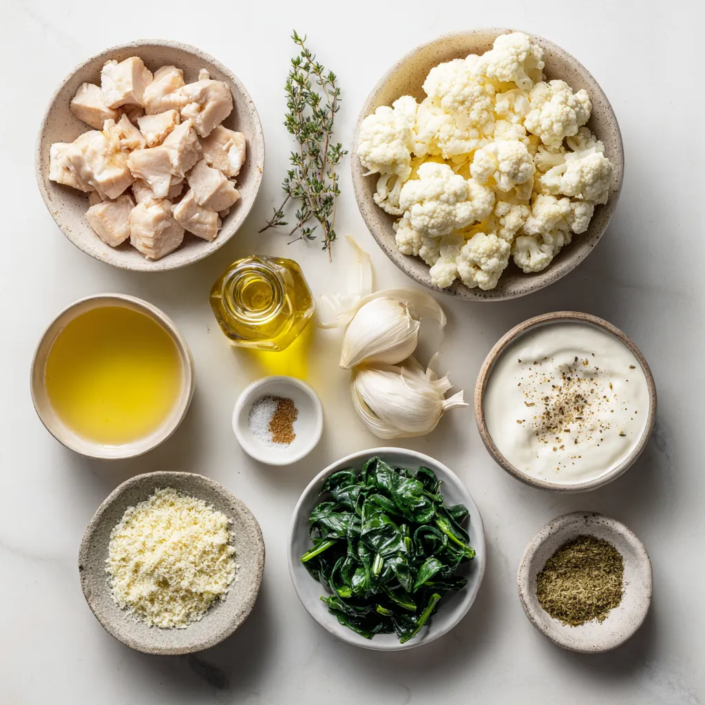 This dish is packed with nutrition. Chicken breast is a lean protein source. It helps build muscles and keep you full. Cauliflower adds fiber and vitamins like C and K. Greek yogurt provides protein and probiotics for gut health. Spinach is rich in iron and antioxidants, which boost your health. Using low-sodium chicken broth cuts down on salt. This dish is low in calories but high in taste and nutrition.