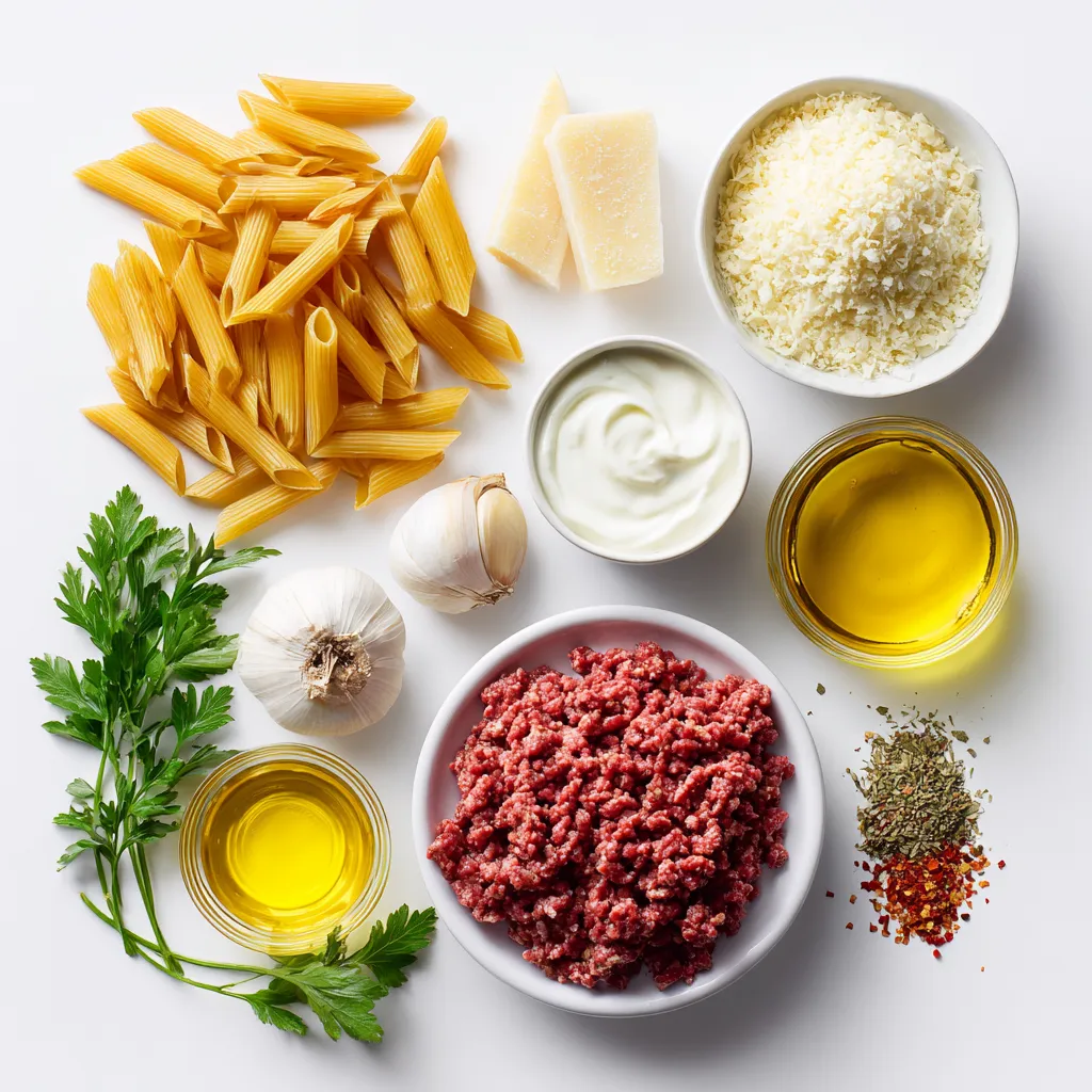 These ingredients work together to create a tasty and nutritious meal. The whole grain pasta adds fiber, while the lean ground beef packs in protein. Greek yogurt gives a creamy texture, and Parmesan cheese adds a rich flavor. Fresh garlic and onion provide a nice aroma and taste. Olive oil helps with sautéing and brings healthy fats. Italian seasoning and red pepper flakes add a kick. Finally, fresh parsley makes the dish look pretty and fresh.