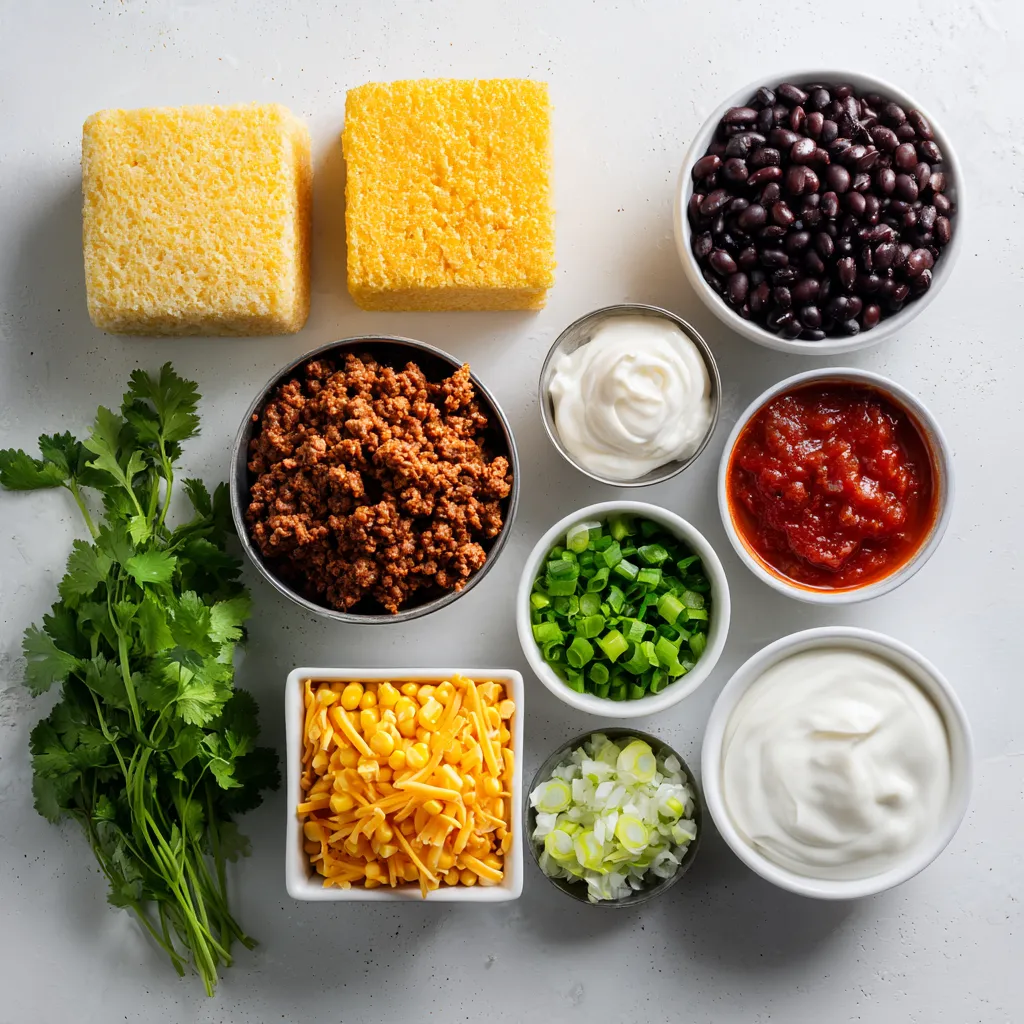 Layer Ingredients: Lightly grease a 9x13-inch baking dish. Start by evenly distributing the meat and bean mixture on the bottom of the dish. Pour the salsa over the meat layer, spreading it out evenly. Finally, dollop the cornbread batter over the salsa and carefully spread it to cover the sauce.