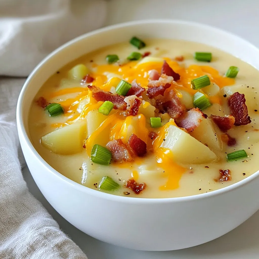 A creamy and hearty potato soup loaded with vegetables, cheese, and bacon.