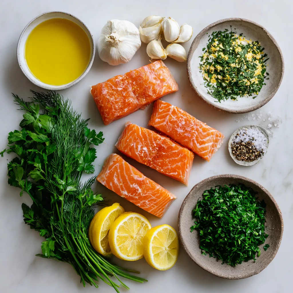 The main ingredients for Marry Me Herb Garlic Salmon are simple yet flavorful. Salmon fillets are rich in omega-3 fatty acids, which support heart health. Garlic adds a punch of flavor while also bringing health benefits, like boosting the immune system. The extra-virgin olive oil is not only healthy but also helps create a lovely crust on the salmon when baked.