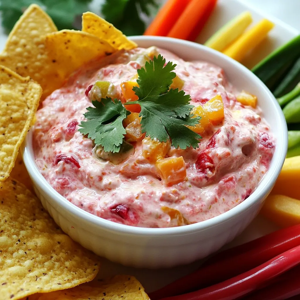 For serving, present your dip with tortilla chips or crunchy vegetable sticks. Carrots and cucumbers work well too. These pairs make it easy for everyone to enjoy your tasty creation. A colorful platter adds a fun touch for gatherings.