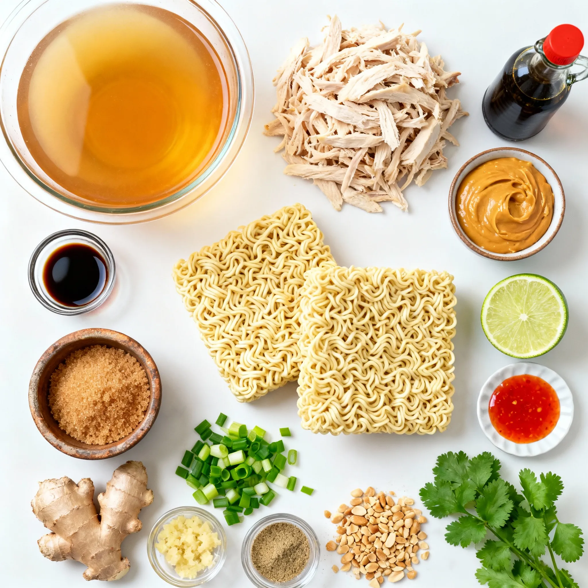 A delicious and creamy ramen dish with Thai peanut flavors, perfect for a quick meal.
