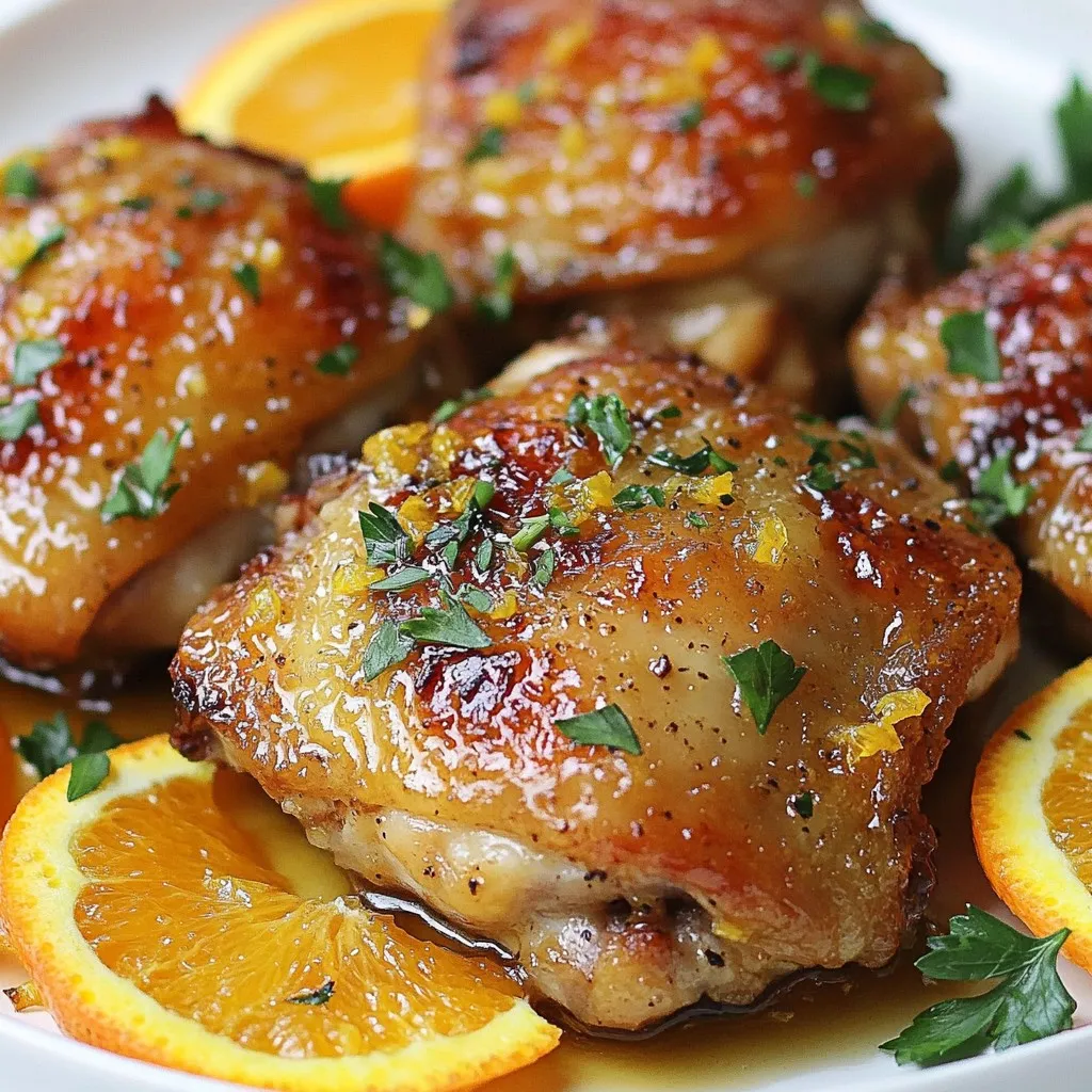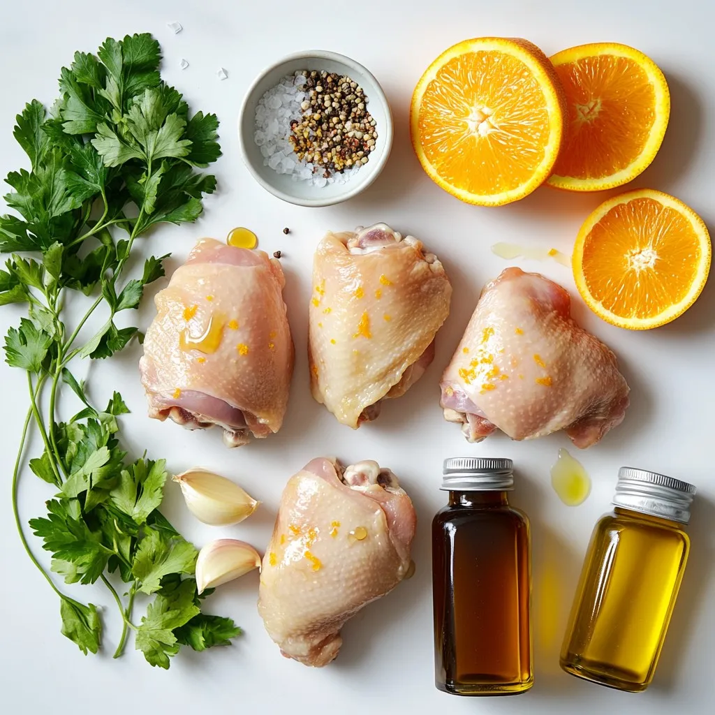 The main ingredients create a rich base for the dish. Chicken thighs offer juicy meat that pairs perfectly with sweet citrus. Fresh oranges bring a bright flavor, while garlic and ginger add warmth.