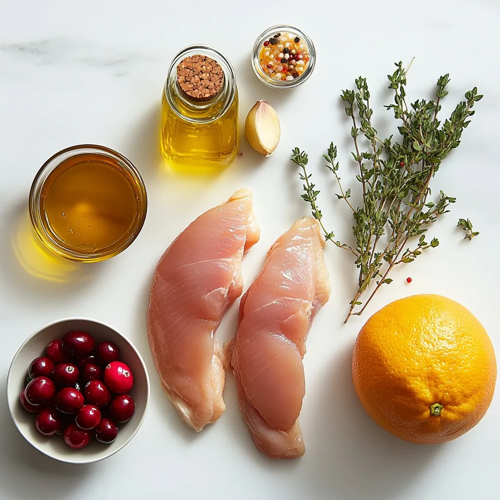 In this recipe, we use chicken breasts as the main protein. They cook fast and stay juicy. Fresh or frozen cranberries add a nice tartness. The orange zest and juice brighten the dish. Honey brings a touch of sweetness, while olive oil helps the chicken sear well. Garlic and thyme add depth and warmth. Don’t forget salt and pepper to season the chicken!