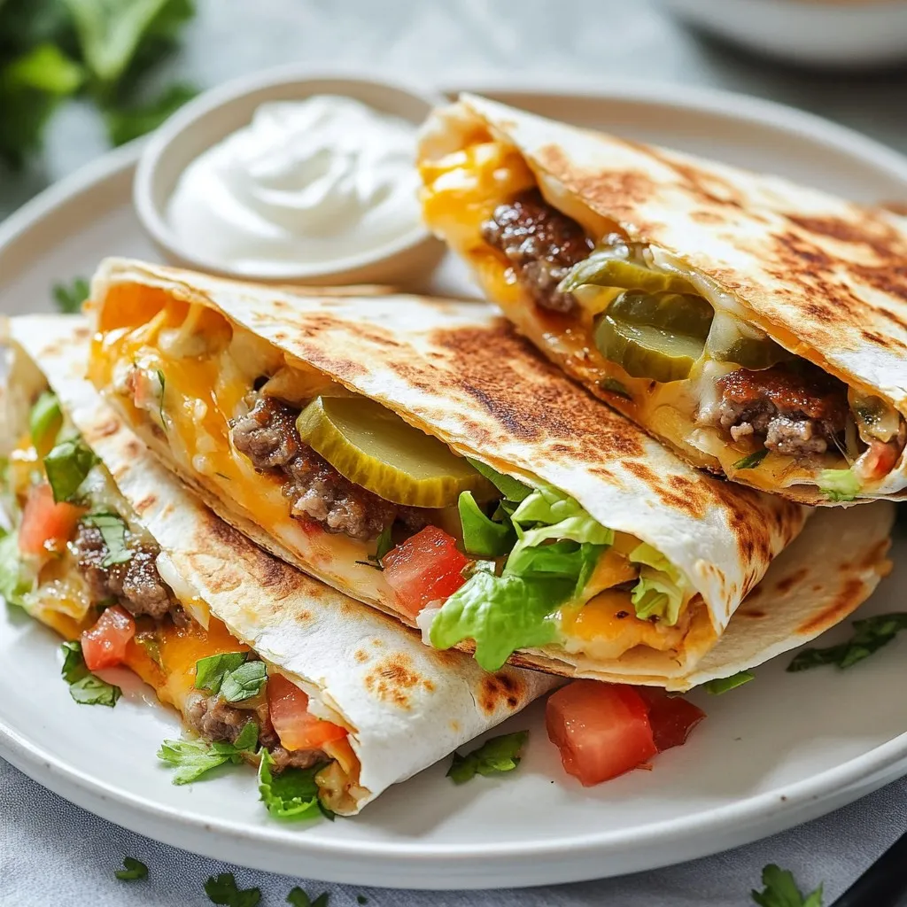 The main ingredients for smashburger quesadillas create a tasty treat. Ground beef serves as the base. I love the blend of garlic powder, onion powder, and smoked paprika for flavor. The flour tortillas hold everything together. Shredded cheddar cheese melts beautifully and adds creaminess. Fresh lettuce, diced tomatoes, and pickles add crunch and zest. Sour cream on the side makes each bite even better.