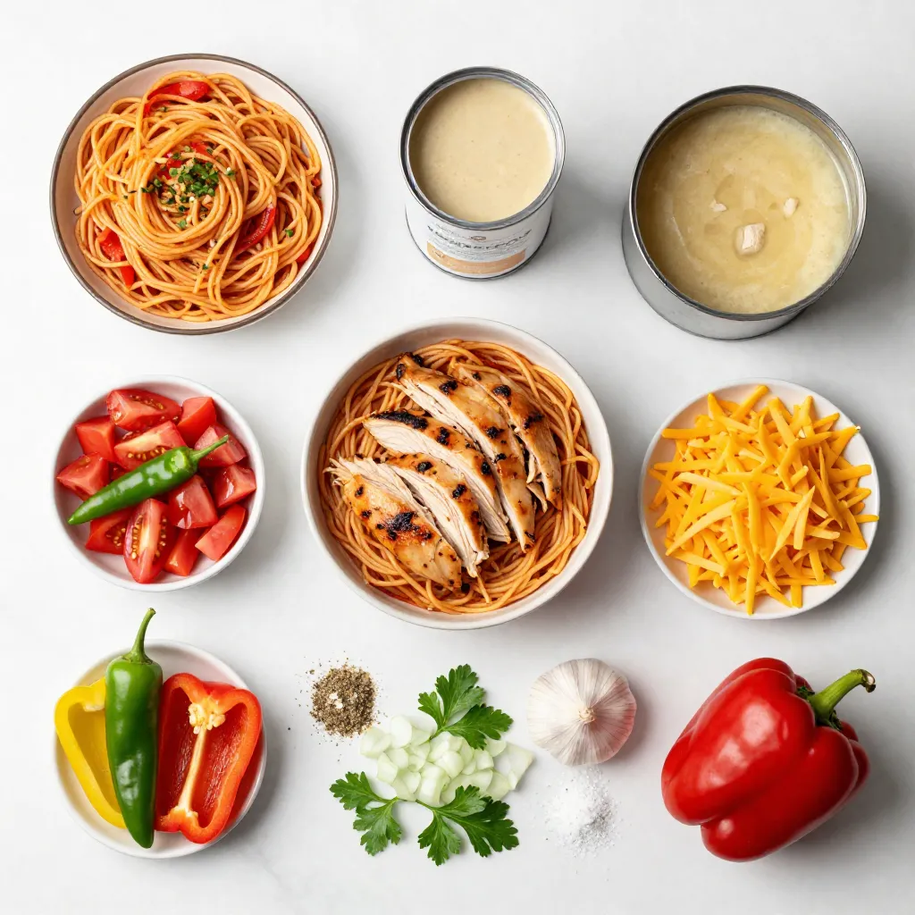 This dish starts with cooked spaghetti, which gives it a solid base. The rotisserie chicken makes it easy and adds great flavor. Cream of chicken soup brings creaminess, while chicken broth keeps it moist.