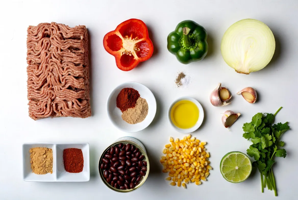 Ground turkey is lean and tasty. It cooks fast and is easy to use. Red and green bell peppers add color and crunch. They make the dish bright and fresh. Yellow onion gives a sweet flavor when cooked. Garlic adds depth and a nice aroma.