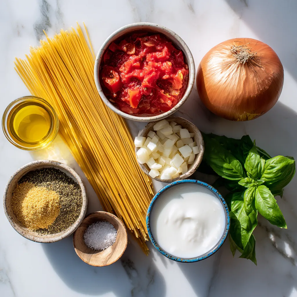 To make Vegan Creamy Tomato Pasta, you’ll need these key items: